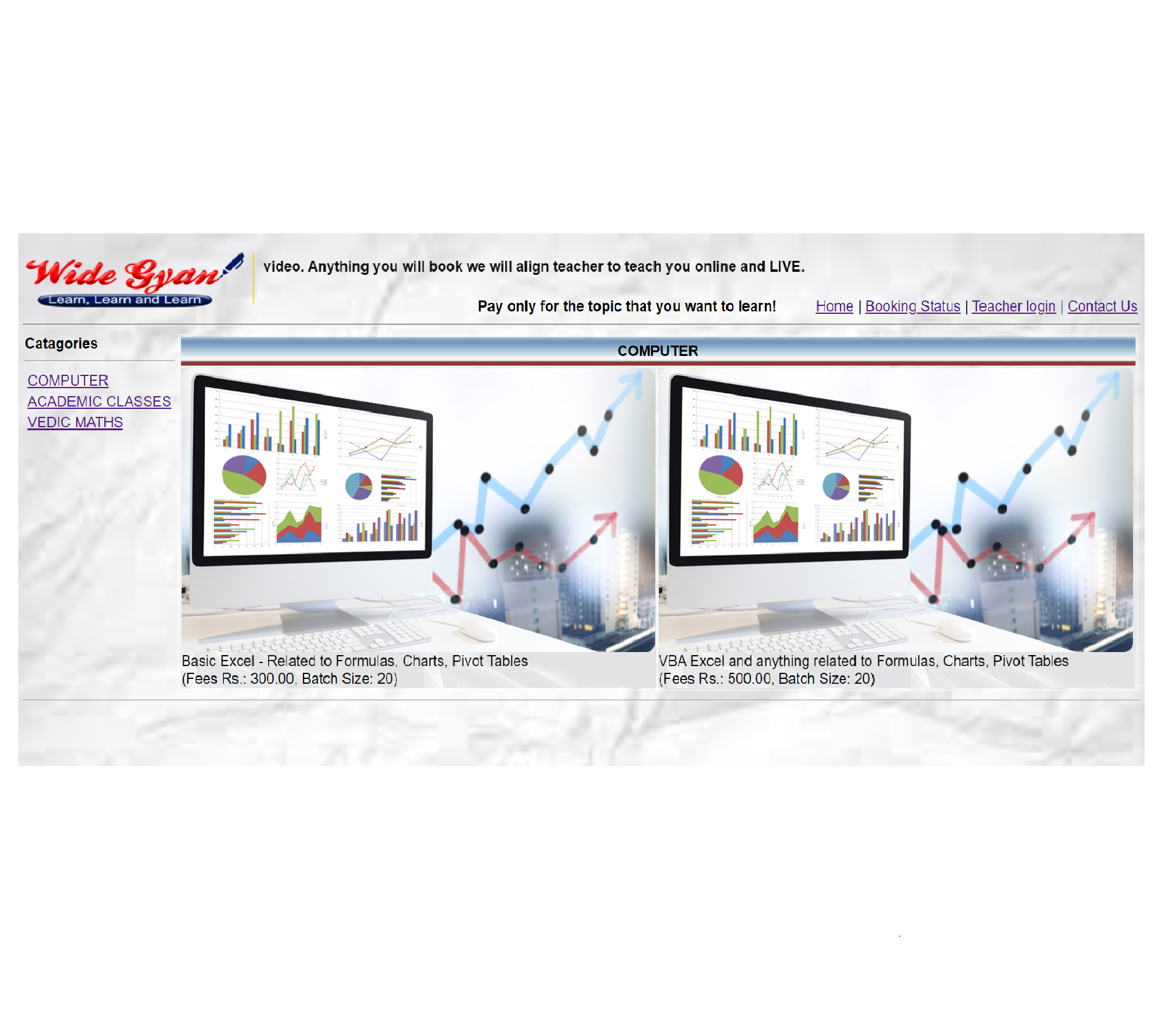 We have developed complete website from scratch for our training portal WideGyan www.widegyan.com